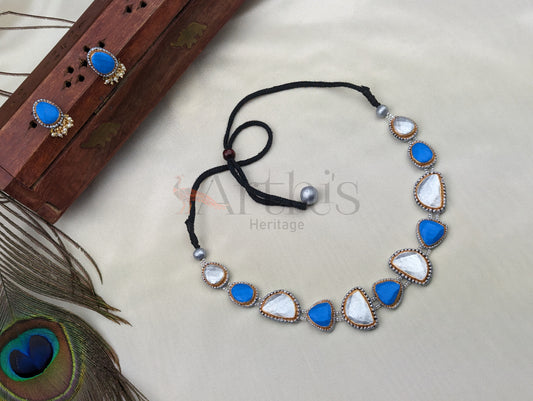 Terracotta Choker Necklace Set with Black Beaded Band & Kundan Stones
